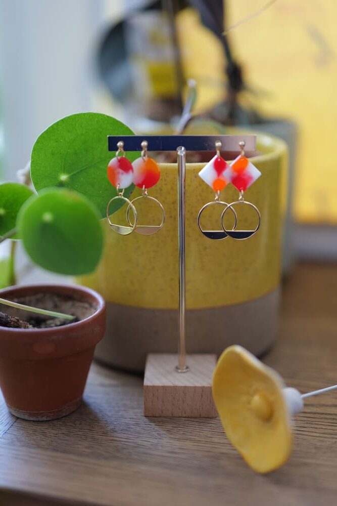 Entièrement réalisées à la main dans mon atelier (situé à Lille), ces boucles d’oreilles en résine pour femme sont montées sur des apprêts en acier inoxydable plaqué Or 18 et 24k. Elles sont donc légères et adaptées aux peaux sensibles pour vous offrir un confort optimal.
