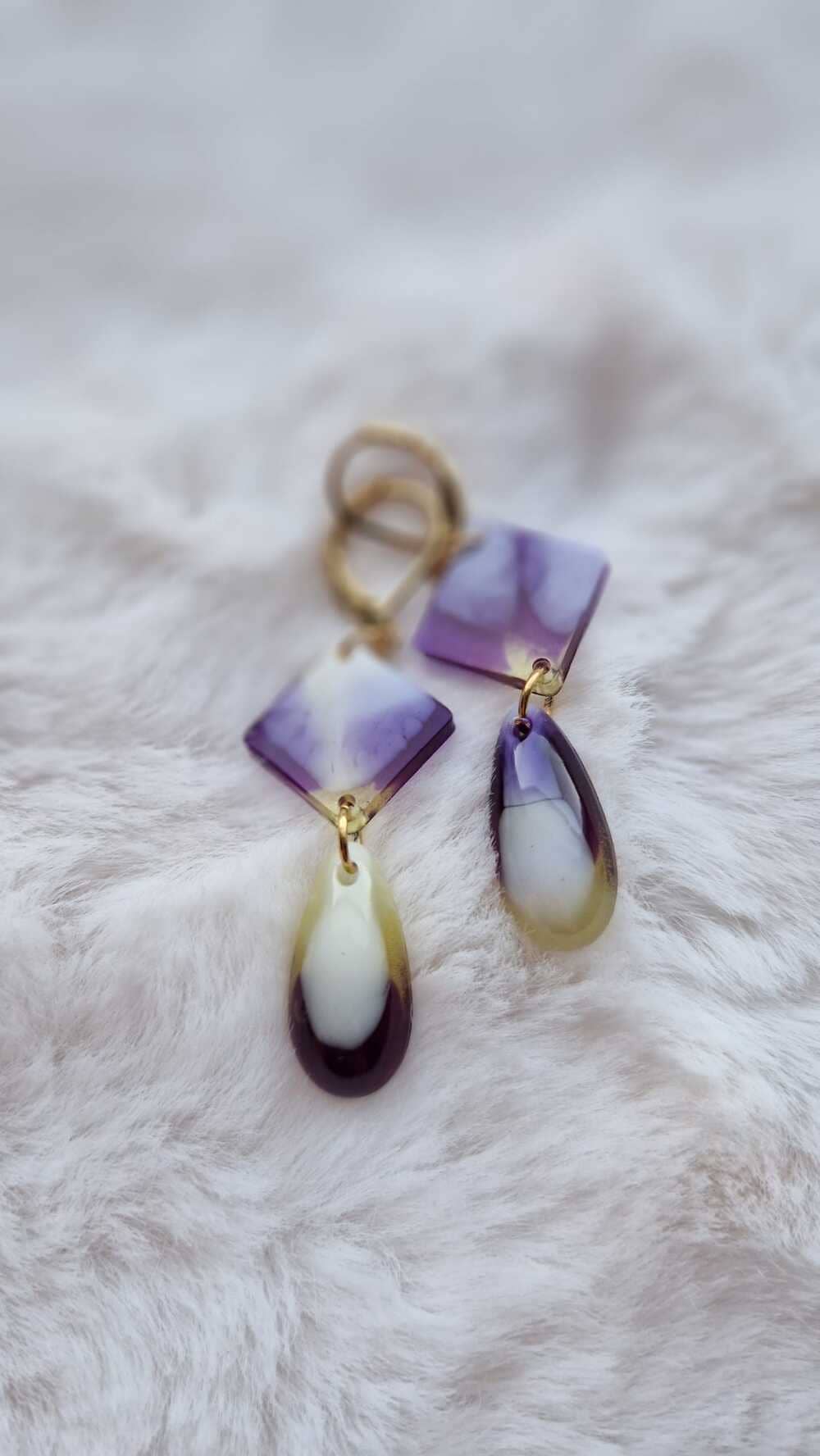 Façonnées à la main en résine époxy et acier inoxydable plaqué or 24k, elles capturent la lumière et dévoilent des reflets délicats à chaque mouvement.